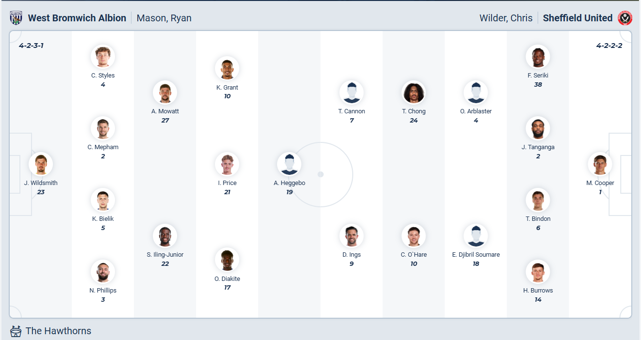 West Brom  đứng thứ 9 mùa giải trước, rõ ràng đội bóng của HLV Ryan Mason không còn đủ lực để cạnh tranh cho tấm vé thăng hạng. Mùa giải năm nay mọi thứ còn đang tồi tệ hơn với đội bóng này khi họ đứng thứ 16 trên bảng xếp hạng sau chuỗi 5 vòng đấu gần nhất chỉ thắng được 1. Rõ ràng các cầu thủ West Brom rất cần một chiến thắng ở vòng đấu thứ 21 này nhưng trước đối thủ đang có phong độ cao như Sheffield United thì nhiều khả năng chuỗi trận không tốt của West Brom chưa thể kết thúc.